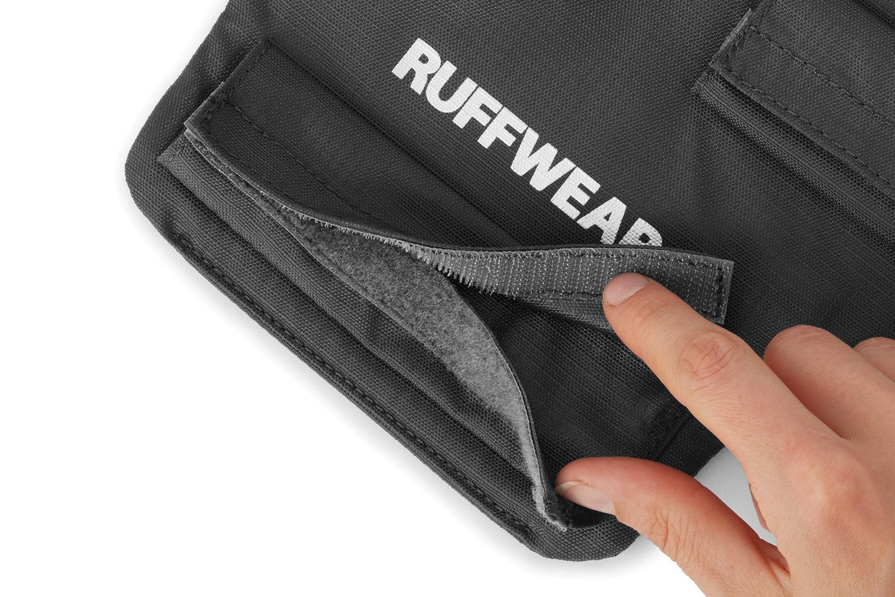 The Brush Guard easily attaches to existing Ruffwear harnesses and packs, using hook-and-loop sleeve attachments: