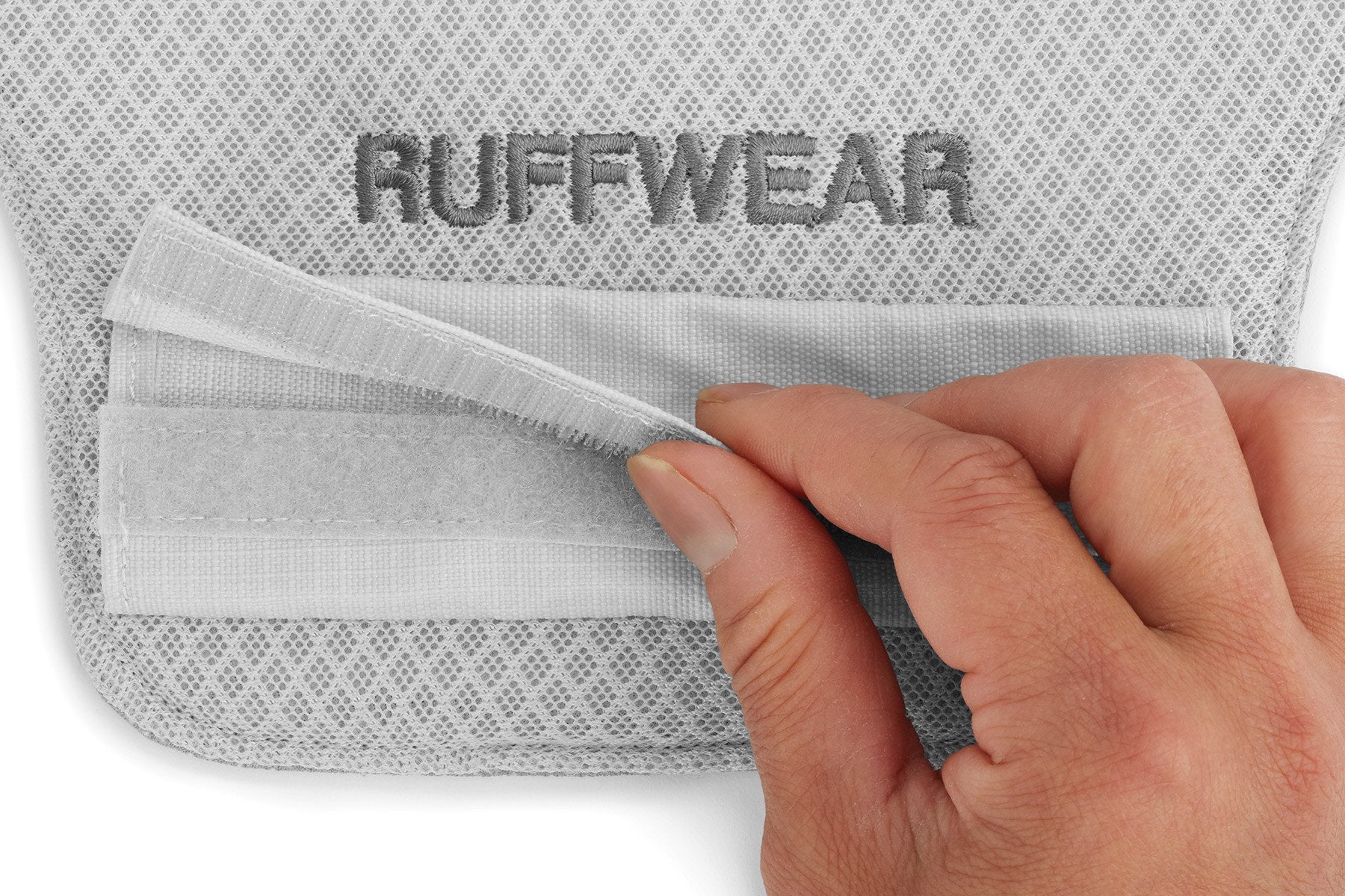 The Ruffwear Core Cooler™ is a cooling dog harness add-on that cools, adds additional support when lifting and assisting, and further stabilizes dog packs and dog harnesses. This three-layer chest panel uses evaporative cooling to efficiently pull heat from the dog’s core during warm temperatures and high intensity activities. To activate, wet the Core Cooler with water and wring out. The Core Cooler easily attaches to Ruffwear harnesses and packs using hook-and-loop sleeves: