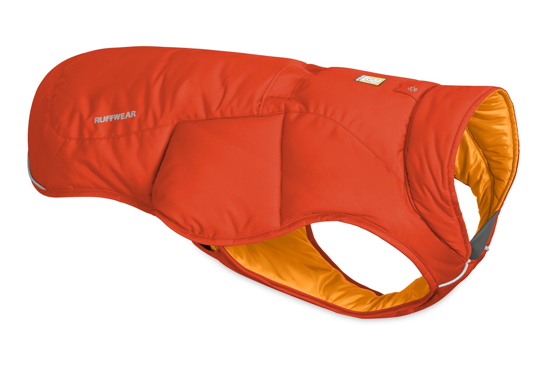 The Ruffwear Quinzee™ is a packable insulated winter dog jacket. Recycled polyester insulation provides lofty warmth in brisk conditions, while side release buckles provide easy adjustment and on/off. The Quinzee stuffs into its integrated stuff sack for convenient storage on the go.