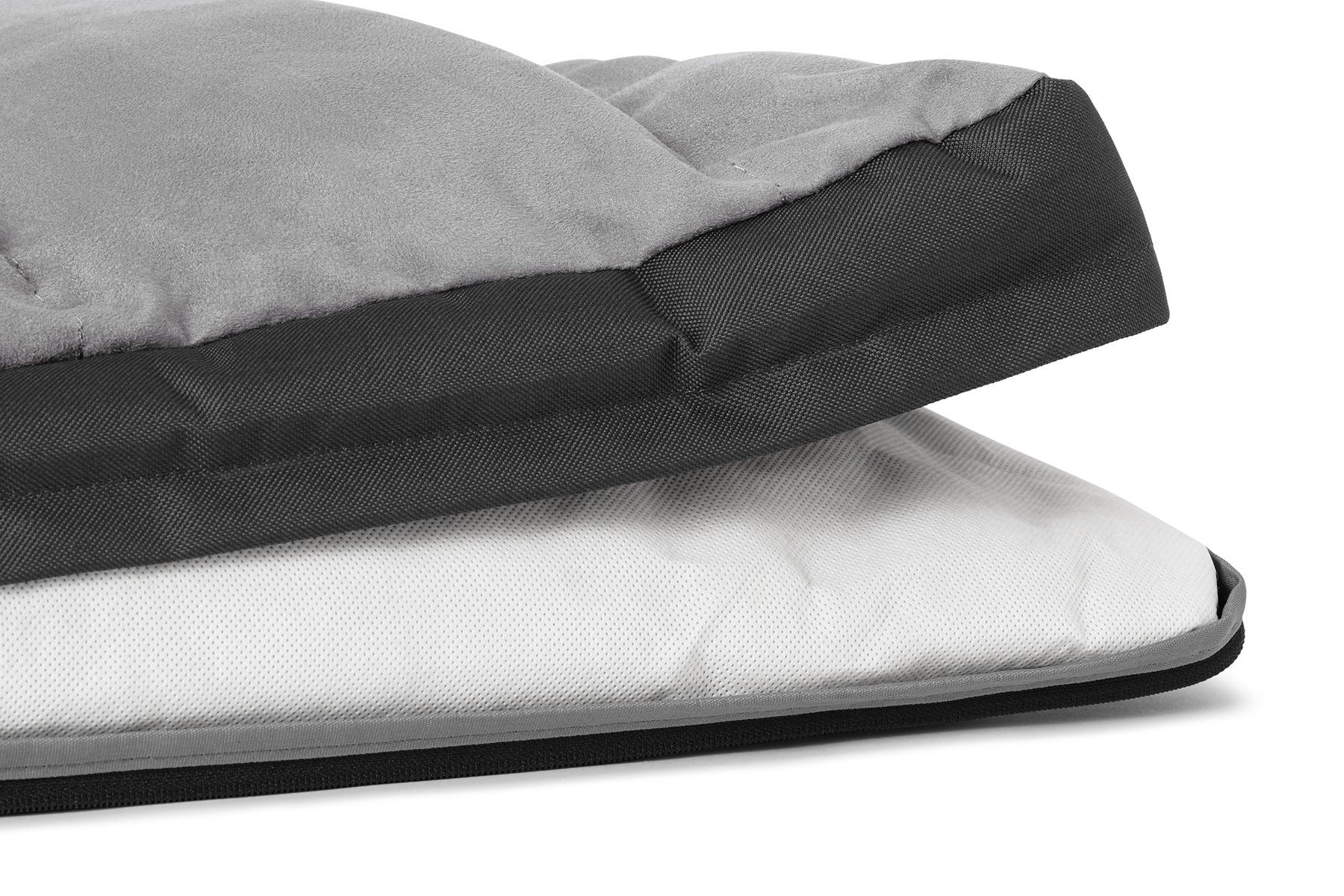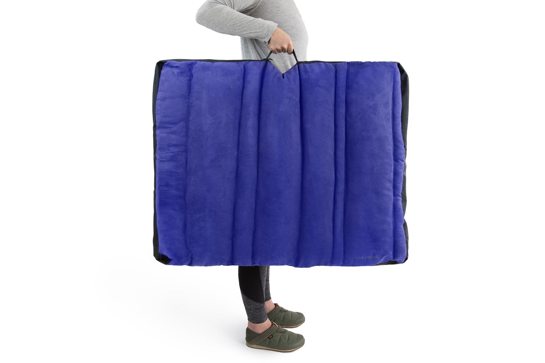 The Ruffwear Restcycle™ Dog Bed is for dogs that love to nest and humans who love to rest easy, knowing that they’ve made the sustainable choice. This mindfully built dog bed has a baffled construction with graded loft, inviting dogs to dig in, circle up, and settle down comfortably. Inside the baffles, our Restcycle™ foam, made from repurposed, post-manufacturing closed cell foam, can be shaped by dogs to create the perfect sleep shape, and then it locks together for supportive slumber. Our Restcycle™ foam won’t pack out and is impervious to liquids and odors. The removable, machine-washable cover is made with recycled materials, and the integrated pillow topper (stuffed with recycled synthetic down) enhances nesting comfort. A built-in handle makes it easy to transport the Restcycle on road trips, and a waterproof base protects floor surfaces while maximizing warmth and comfort. From home base to base camp, the Restcycle Bed offers easy rest to nesting dogs and eco-conscious humans.