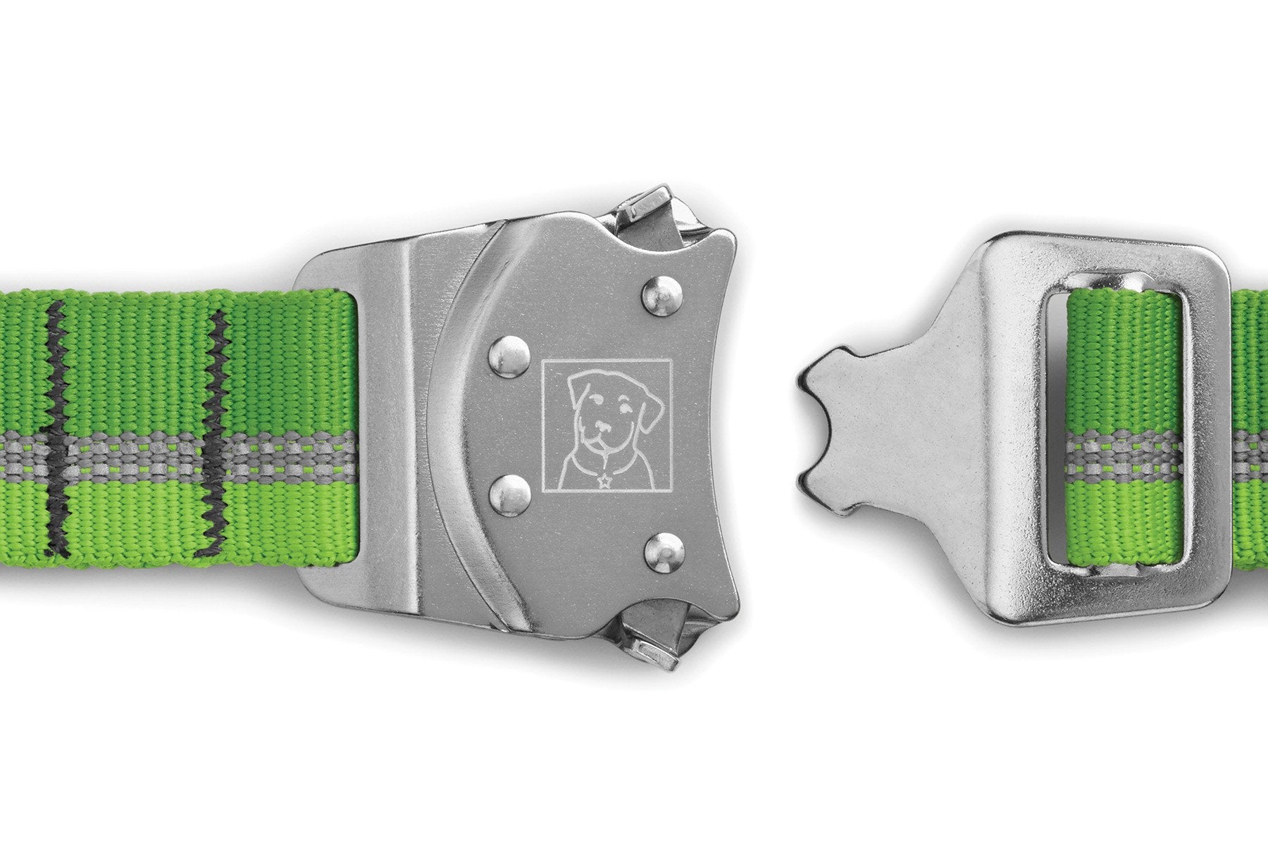 The Ruffwear Top Rope™ Collar offers strength and reliability with our all-metal side-release Talon Buckle™. Positive retention and peace of mind come standard. The collar’s design allows you to conveniently position the V-ring attachment at the top of the dog's neck for quick leash clip-in.